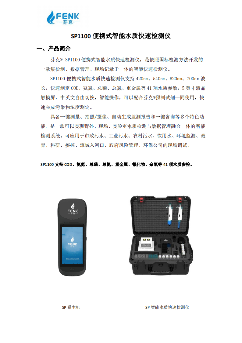 產品標題:SP-1100 便攜式智能水質快速檢測儀